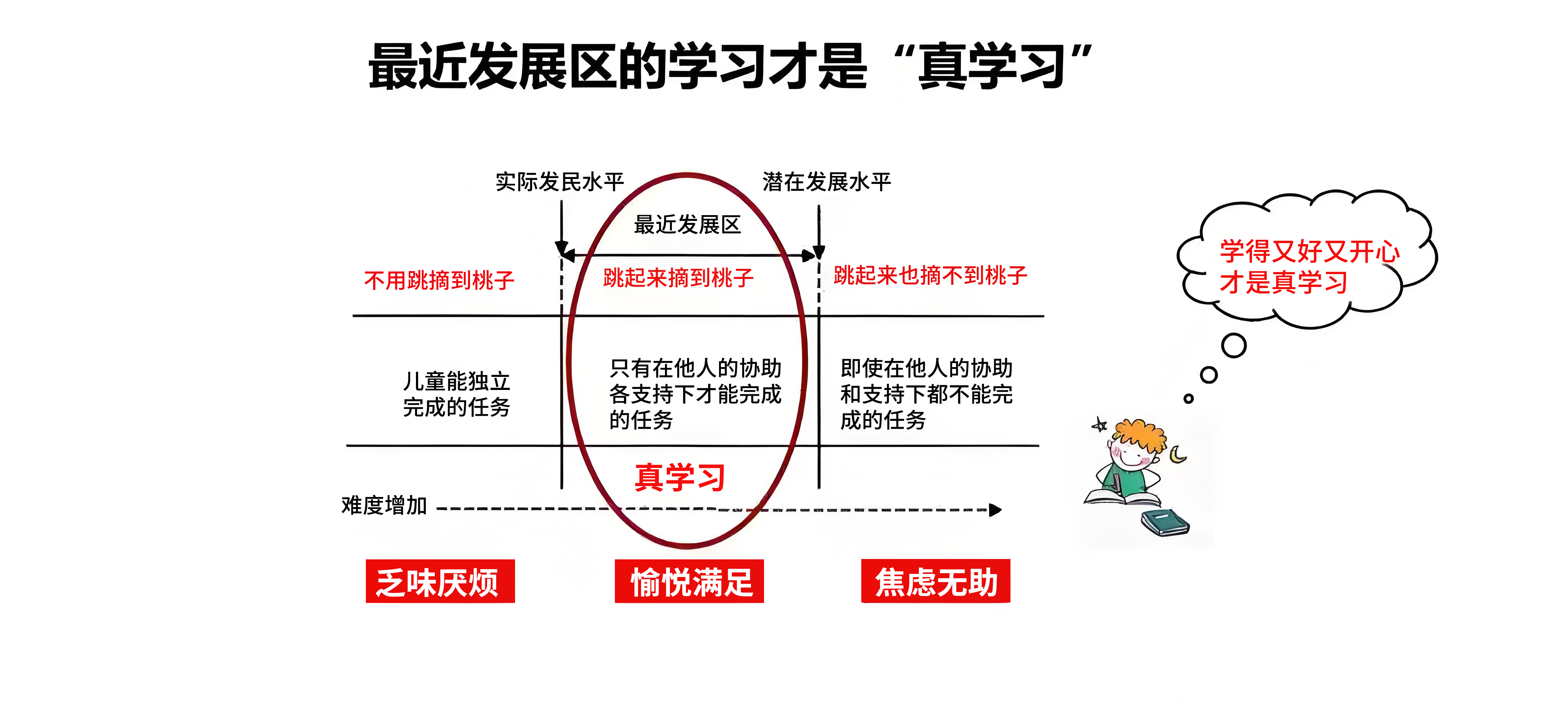 在之前,我们对于孩子的学习如何系统增长可能缺乏有效的理论支撑和操作方法。"最近发展区"理论让家长能够有一种可以真正操作的帮助孩子进行学习增长的模型。